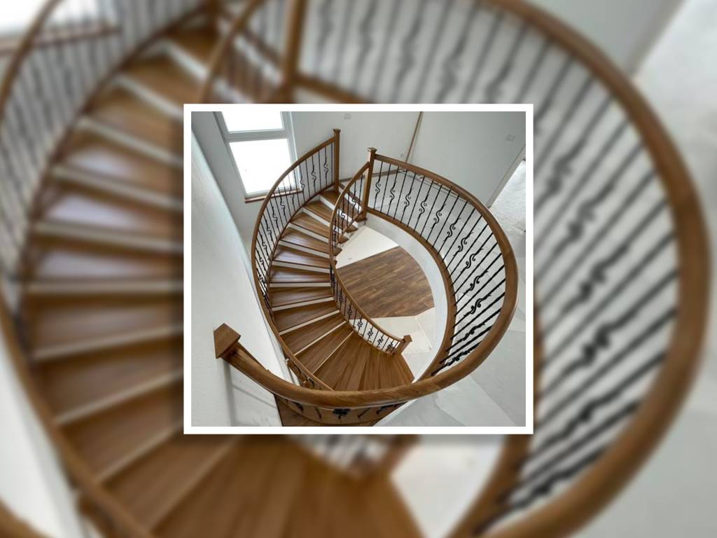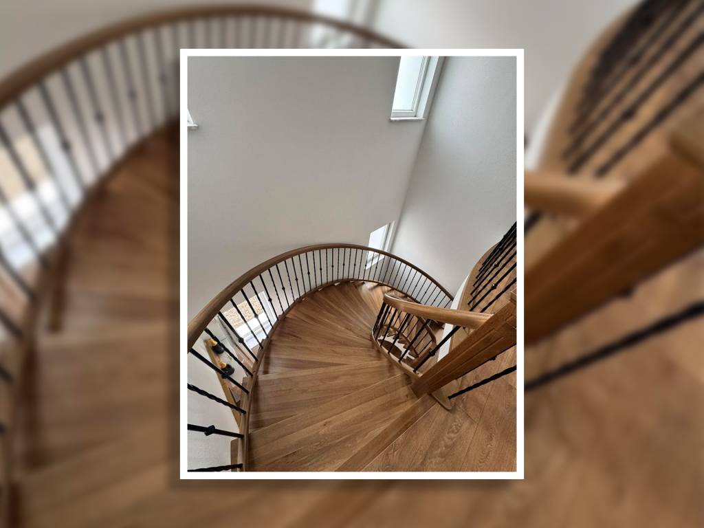 Shkallë druri ovale që ndërthurin elegancën organike me mjeshtëri të përkryer.